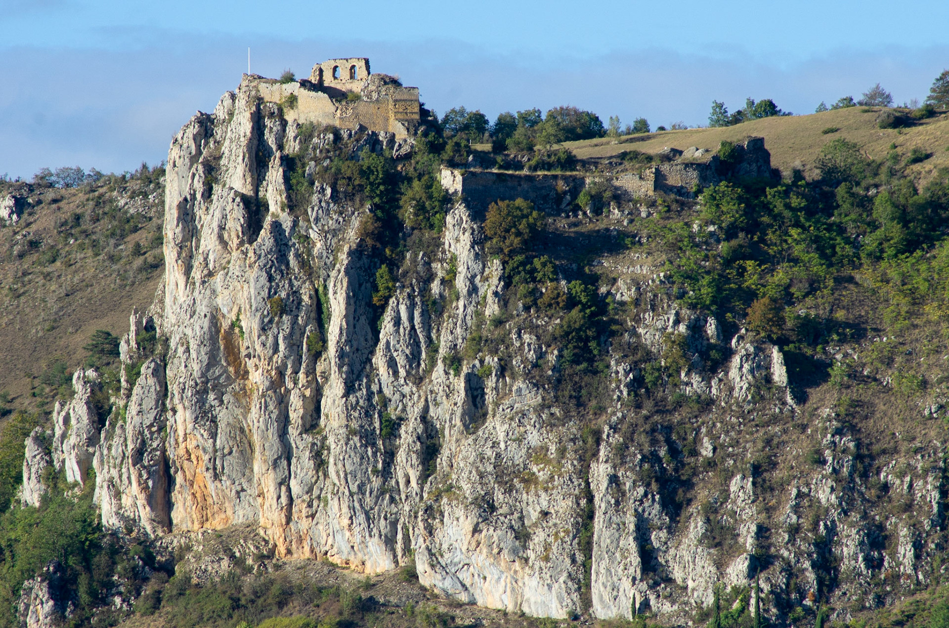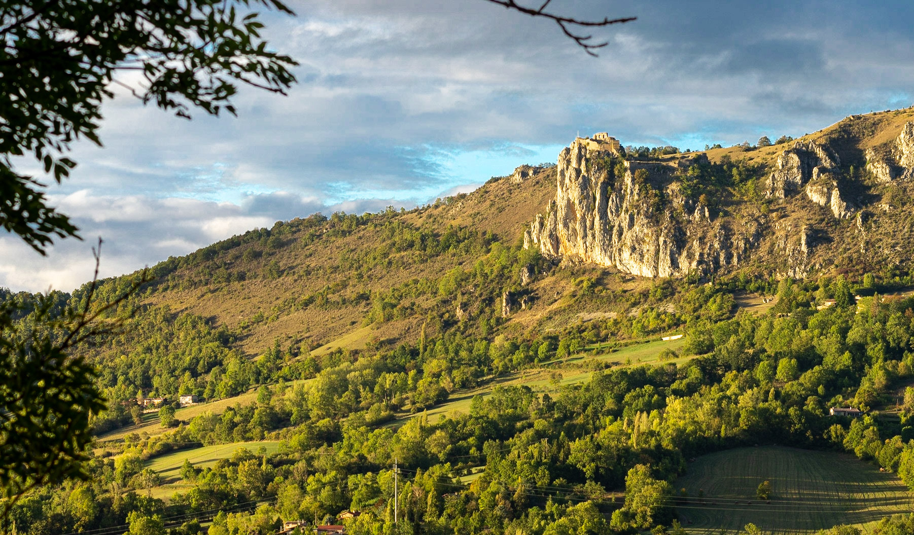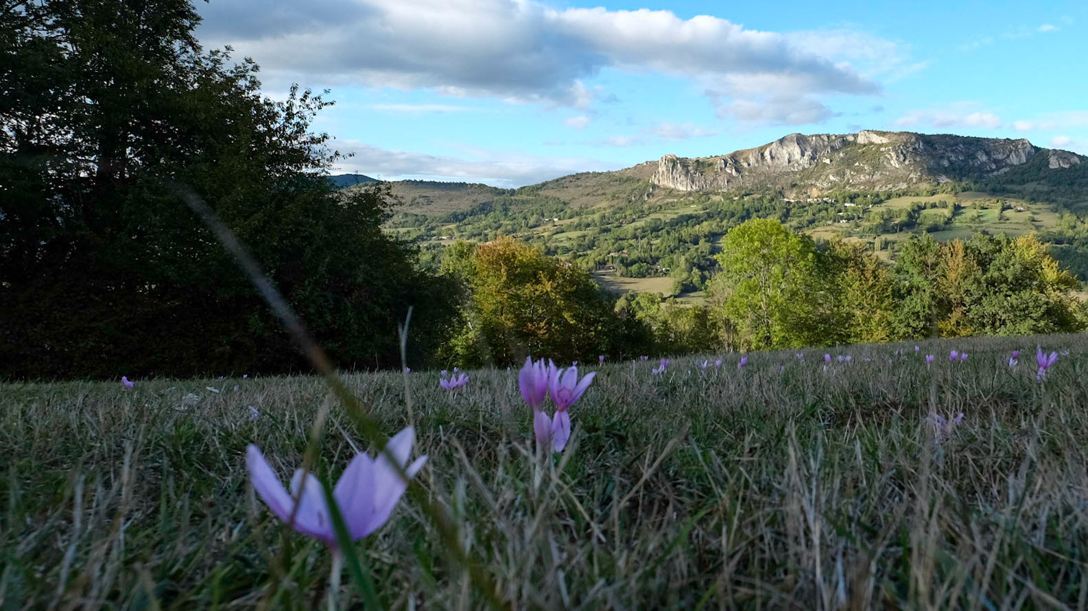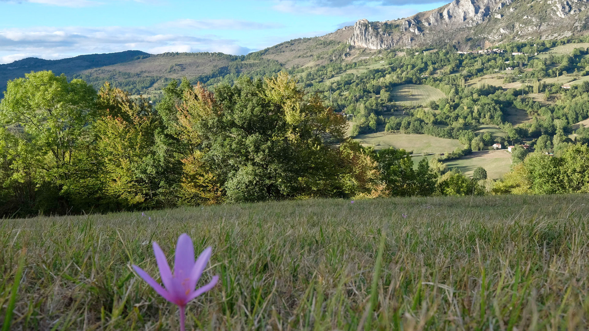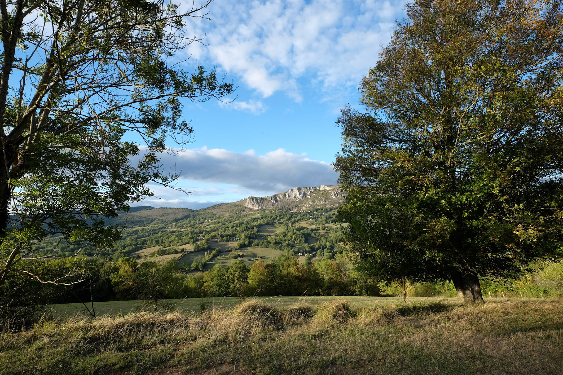 Depuis le hameau de Février sur les hauts de Nalzen, on a une vue superbe du Pech de Roquefixade et des hameaux sous le village.